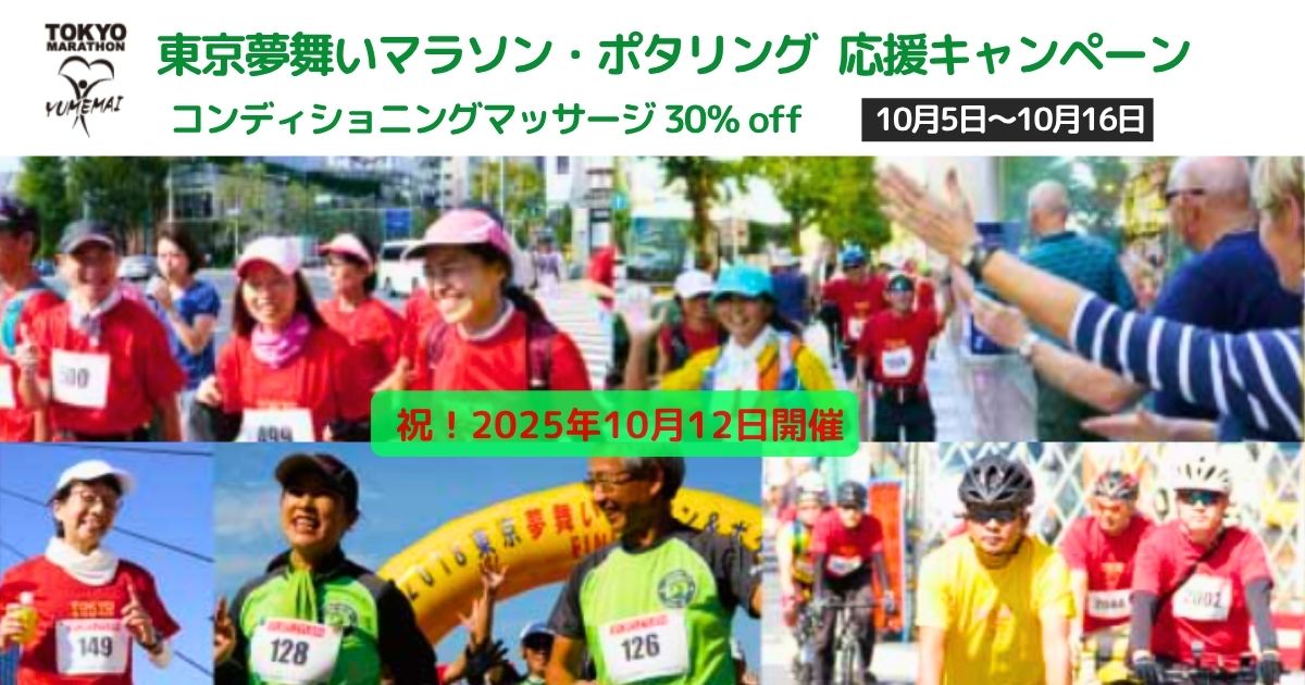 東京夢舞マラソンに参加のランナー、ボランティア、役員の方ならどなたでも!スポーツマッサージ30%OFF